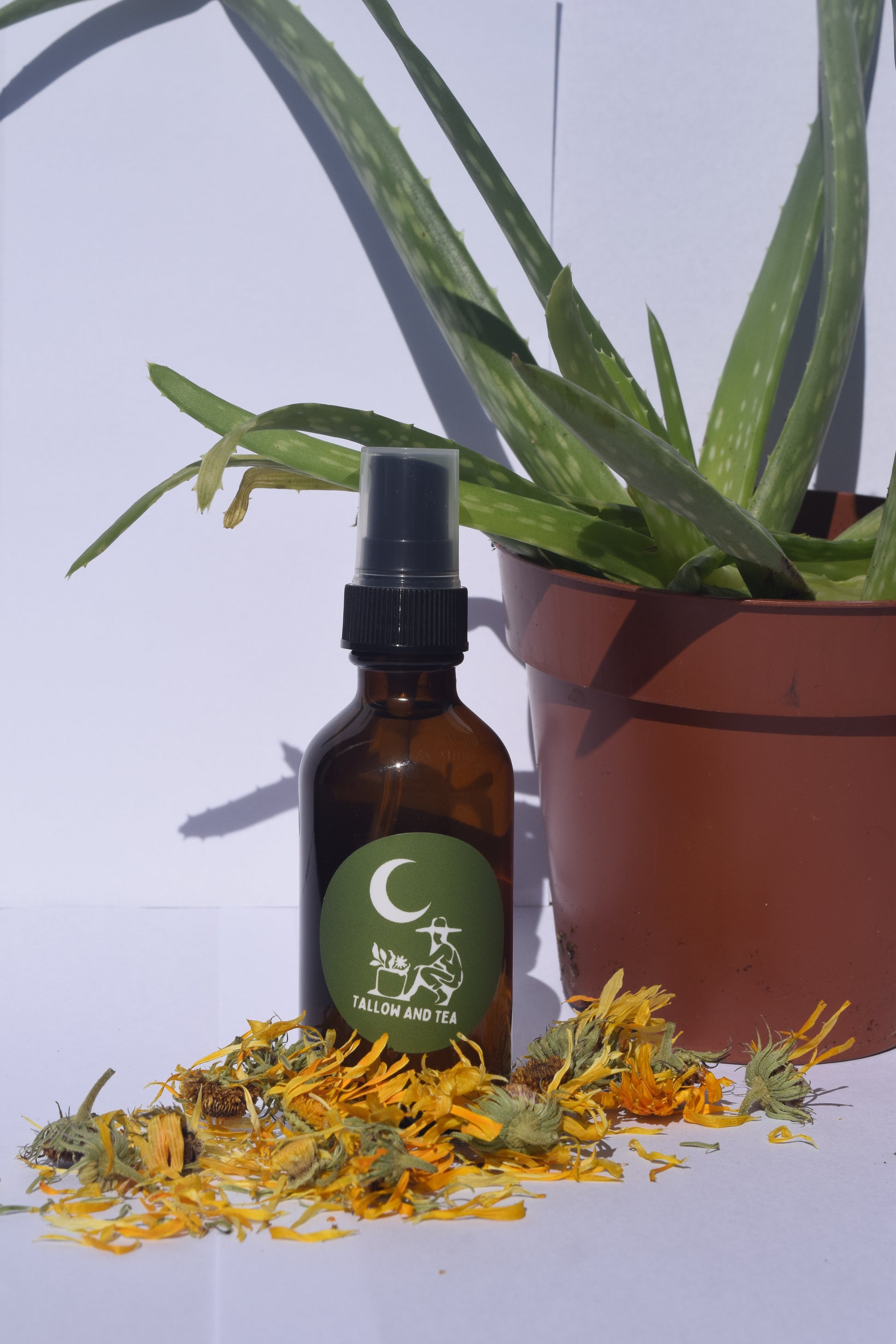 Ingredients: water, sea salt, peppermint hydrosol, calendula hydrosol, 100% rosemary essential oil, and aloe vera.